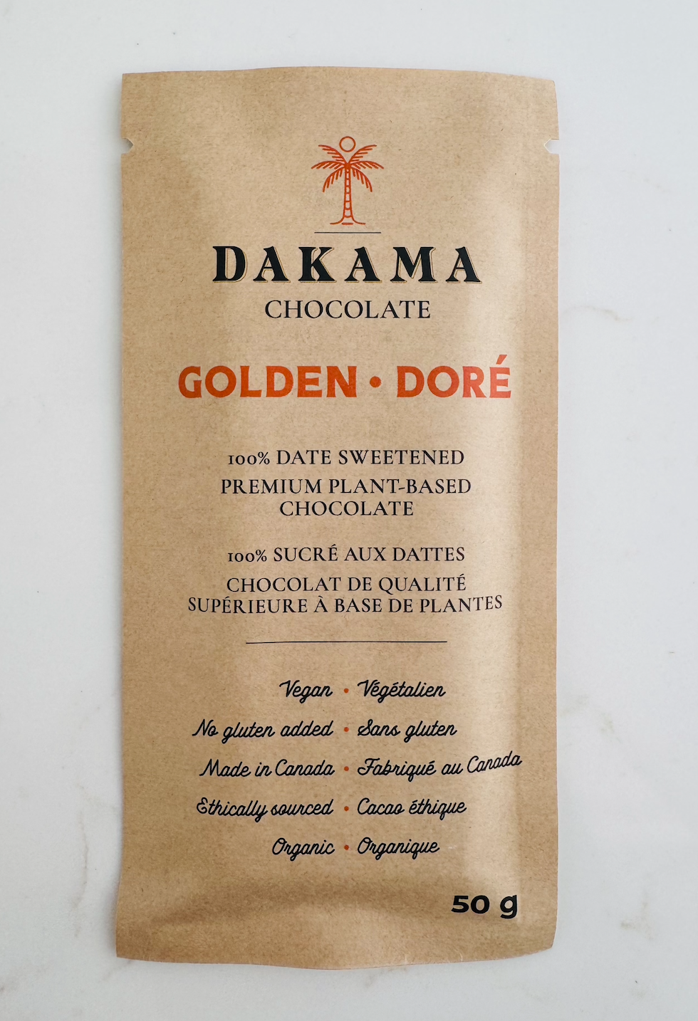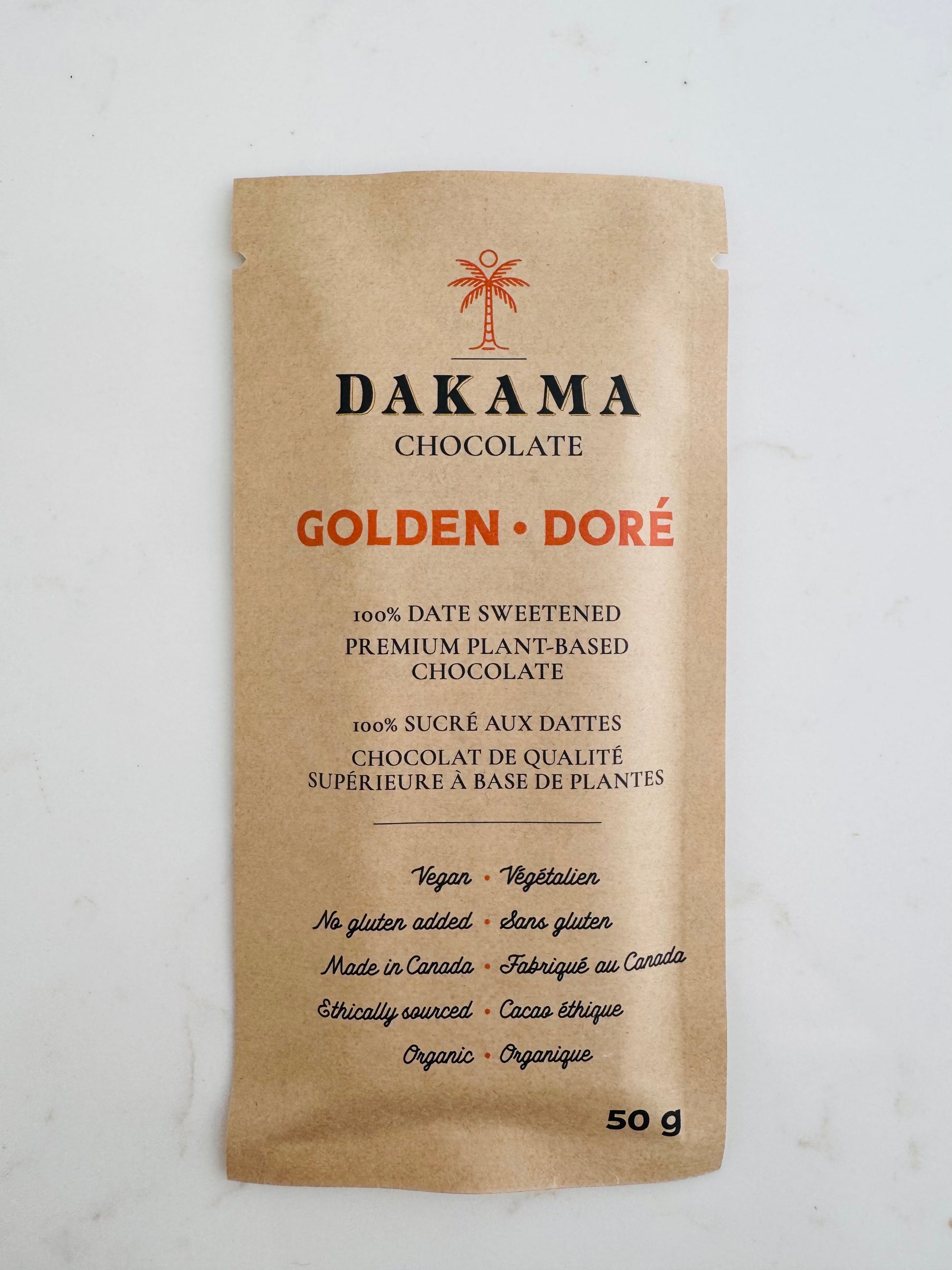 100% Date SweetenedPremium Plant Based ChocolateDairy Free white chocolateVeganGluten-FreeMade by hand in Prince Edward CountyEthically SourcedOrganic