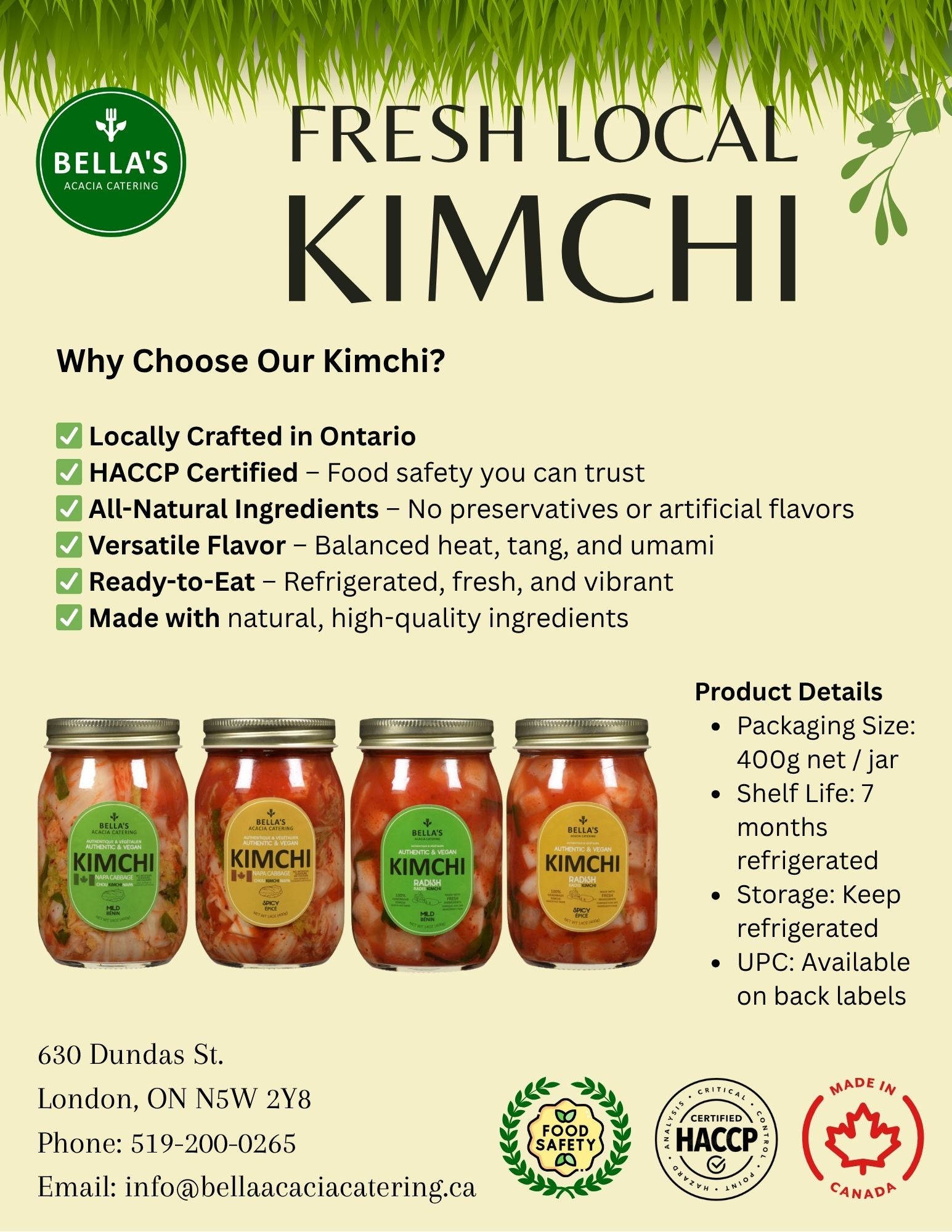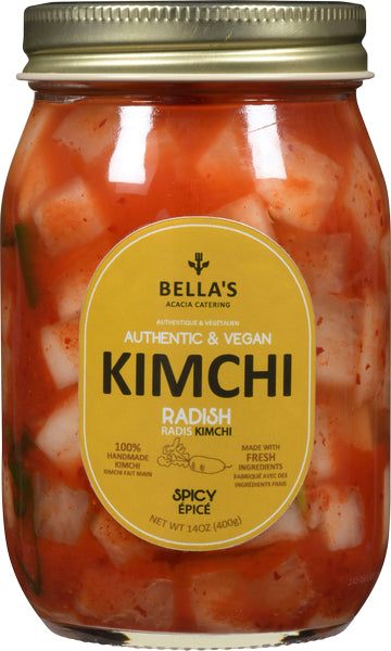 100% handmade kimchi with fresh ingredients, fresh napa cabbage, radish, ginger roots, garlic, onion, green onions, and red pepper powder. *Net. Wt 14 Oz (400g)