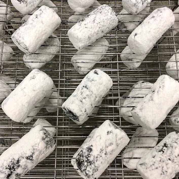 Our perfectly tangy chèvre, rolled in a layer of vegetable ash and surface ripened.