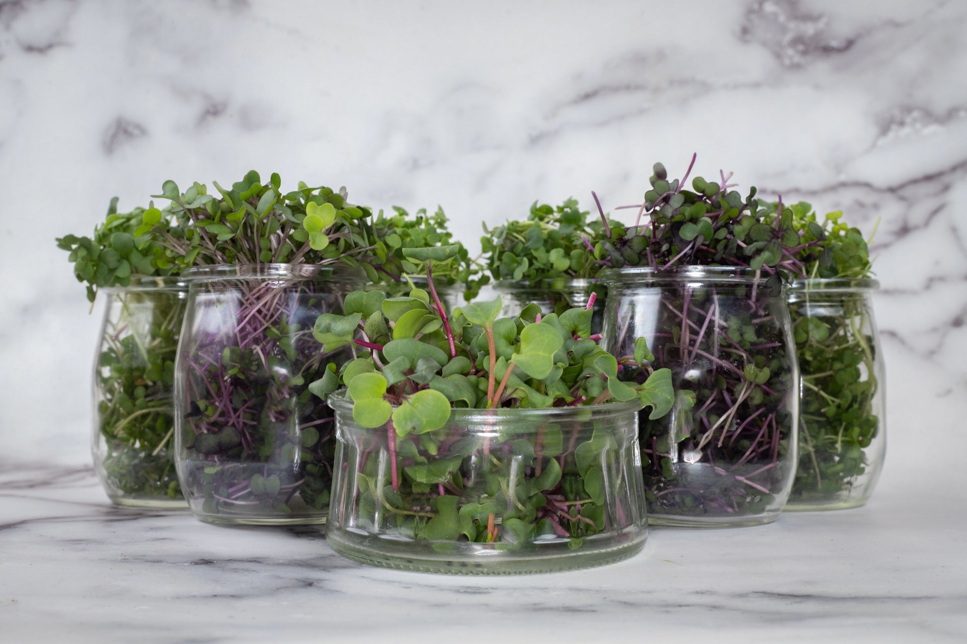 Hydroponic, pesticide-free microgreens. Mix of two or more varieties: broccoli, speckled pea, radish, kohlrabi, Sassy Brassica blend (yellow mustard and rapini), Hot Honey Mustard blend (arugula and yellow mustard). Exact mix subject to harvest availability.